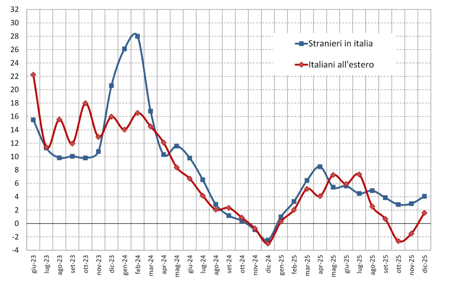 ROMA (ITALPRESS) – Last December the balance of tourist payments of Italy has marked a surplus of almost 0.7 billion euros, substantially in line with the same month of 2024. Expenditure of foreign travellers in Italy (equal to 3.0 billion) grew by 6.6 percent, while that of Italian travellers abroad (equal to 2.4 billion) increased by 7.3 percent. The Bank of Italy announces this, underlining that in the fourth quarter of 2025, both flows increased from the same period of 2024, respectively 4.1 percent for revenue and 1.6 percent for outputs.