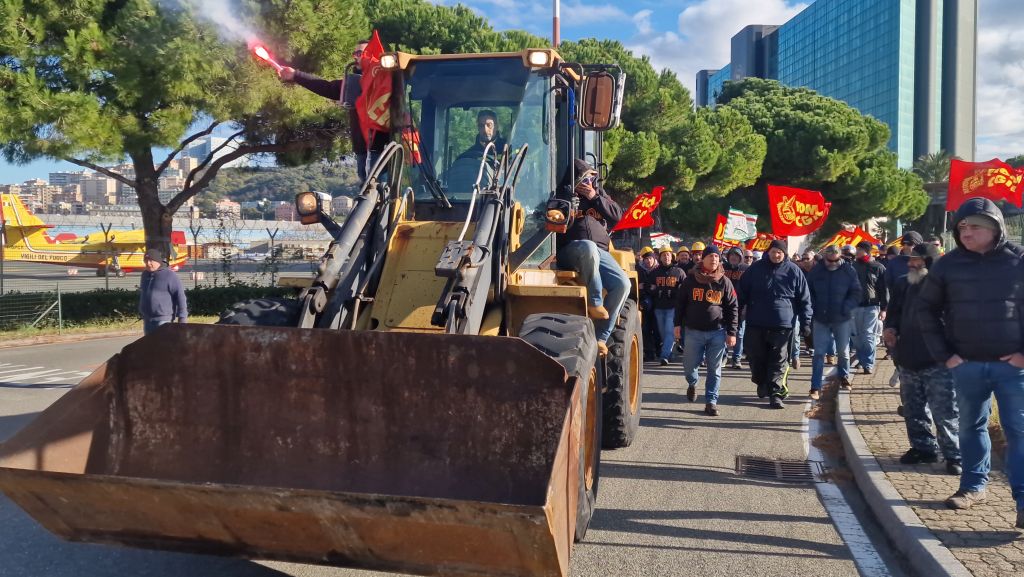 GENOVA (ITALPRESS) – The former workers of Genoa have blocked the Cristoforo Colombo airport. In front of the arrival terminal a mechanical shovel, “simbolo del lavoro e non delle Chat del Governo”. Together with them also the workers of Ansaldo Energia, who yesterday occupied the factory against the alleged decision from the company to delocalize the production of static bars and already in 2022 had occupied the port of call, and the workers of Fincantieri on strike for solidarity.